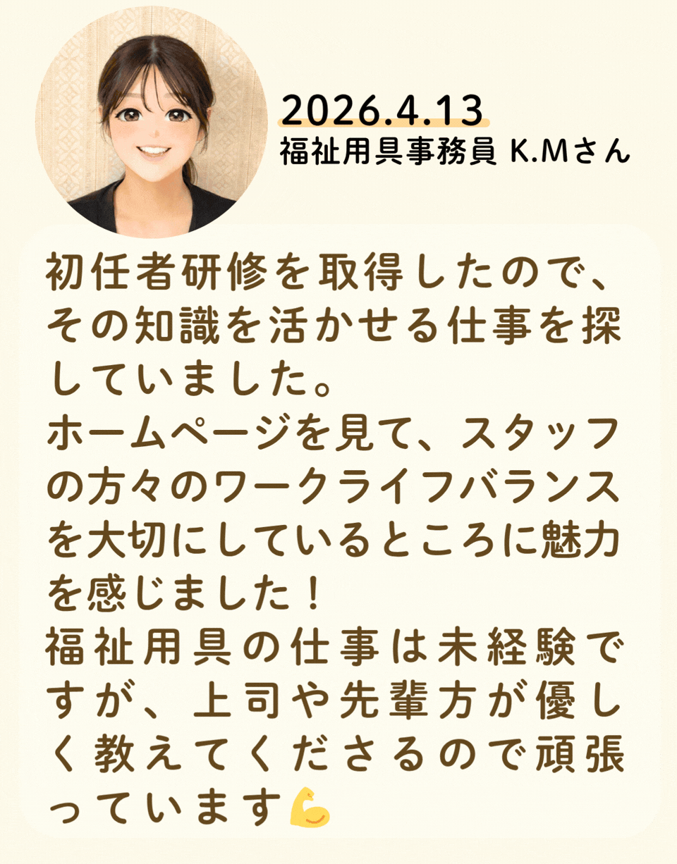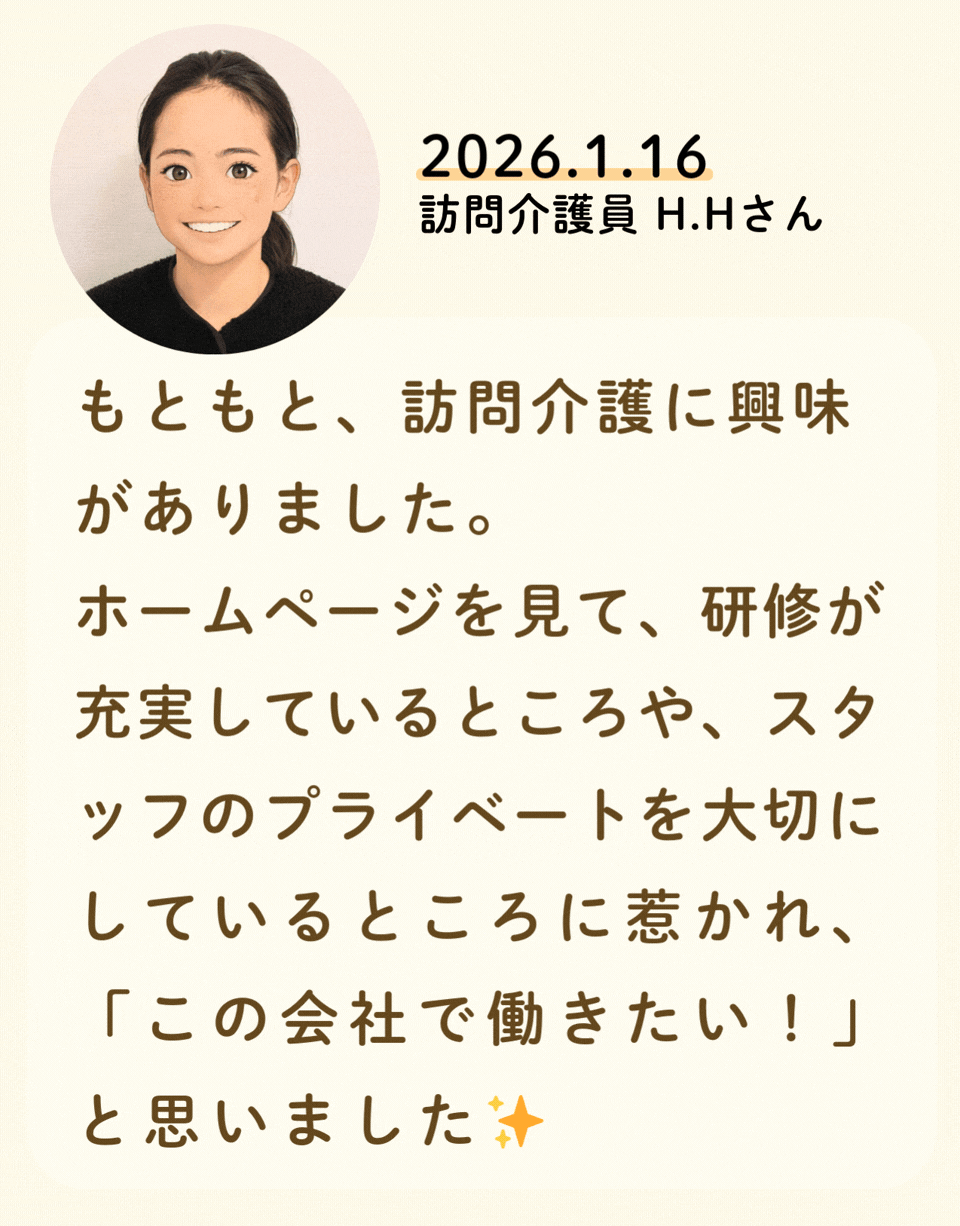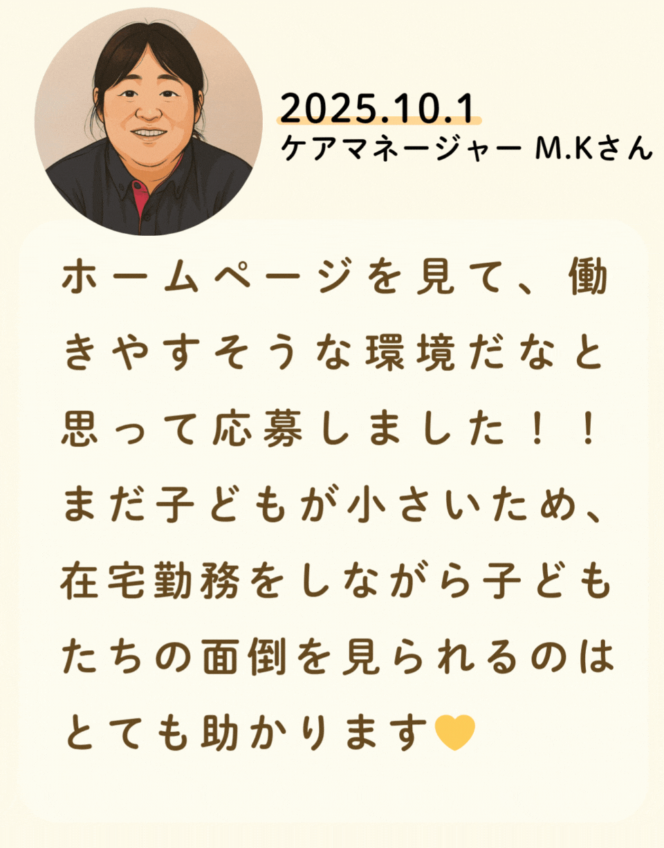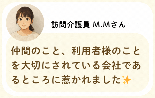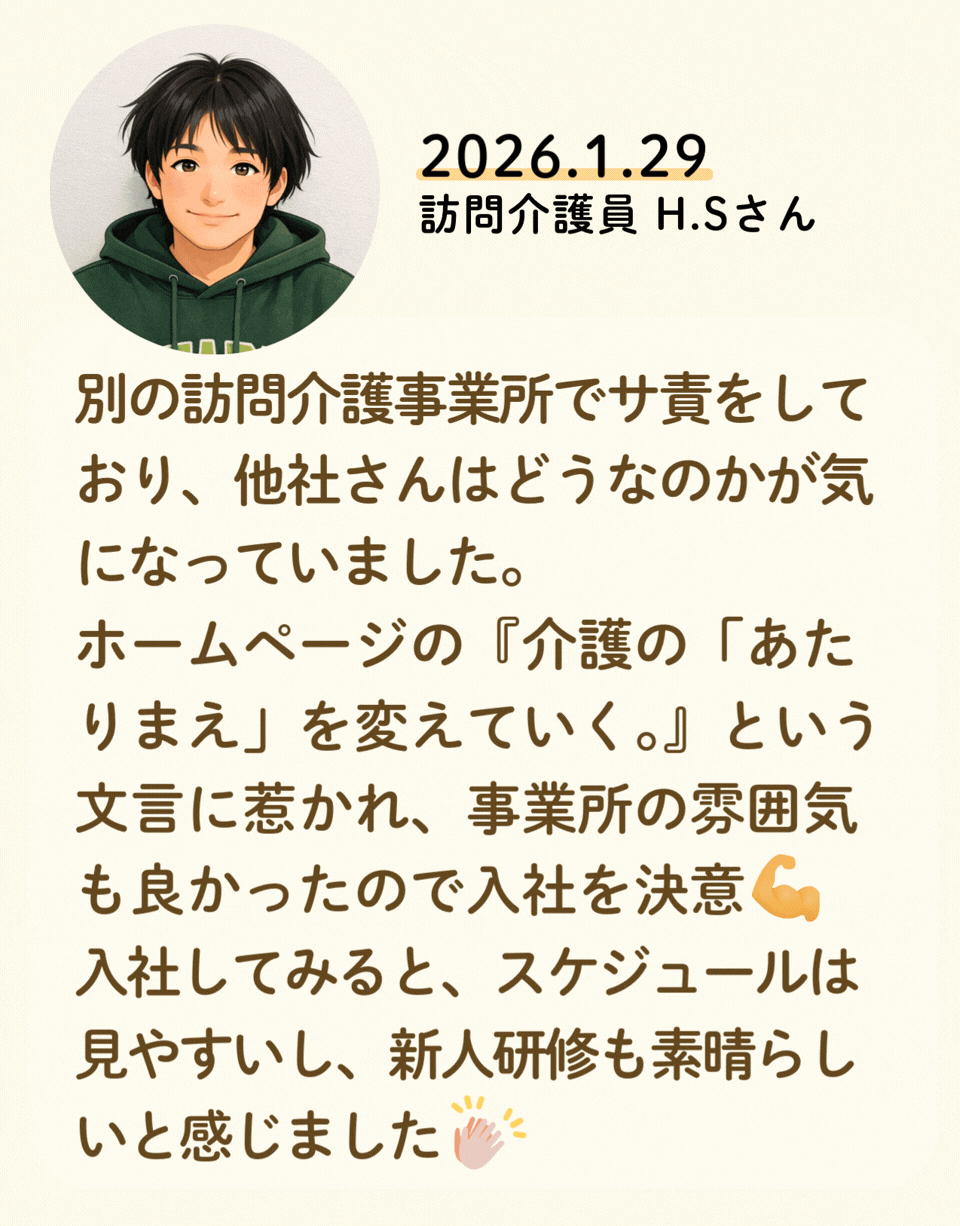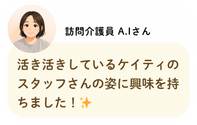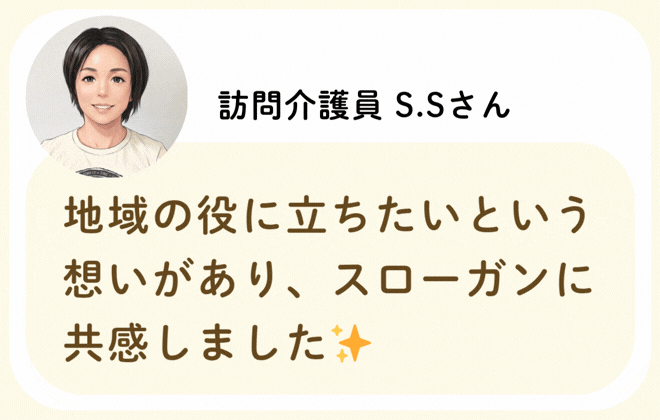 私たちが活躍することで、地域に思いやりが巡っていく。利用者様にも、仲間たちにも!