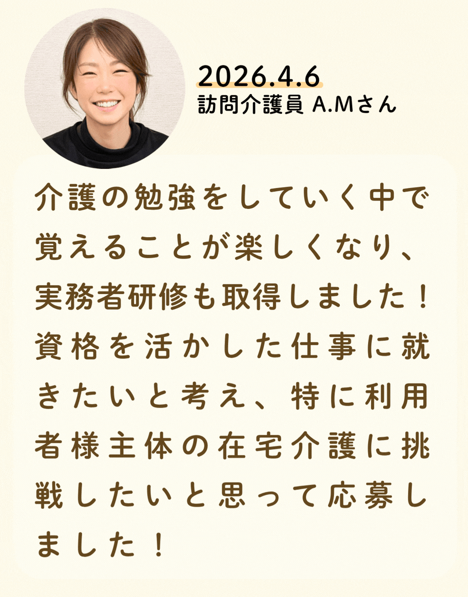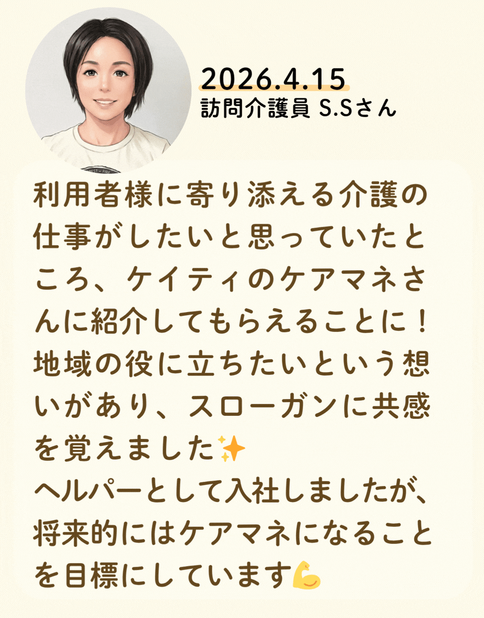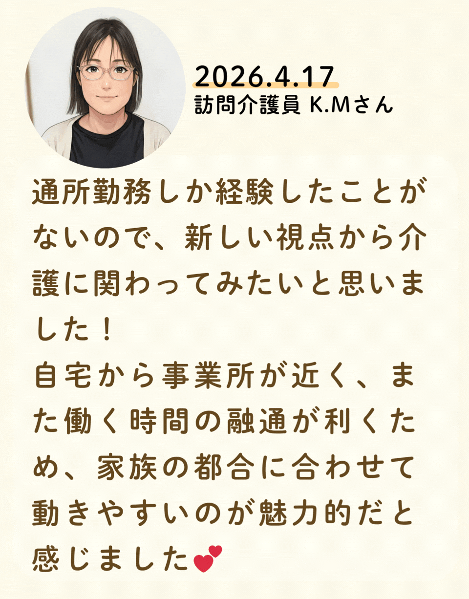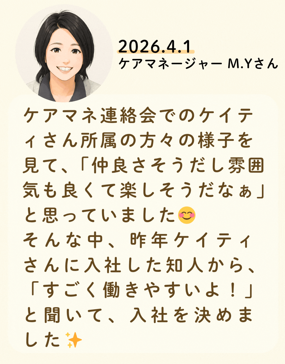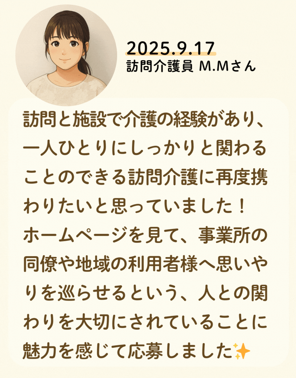 私たちが活躍することで、地域に思いやりが巡っていく。利用者様にも、仲間たちにも!