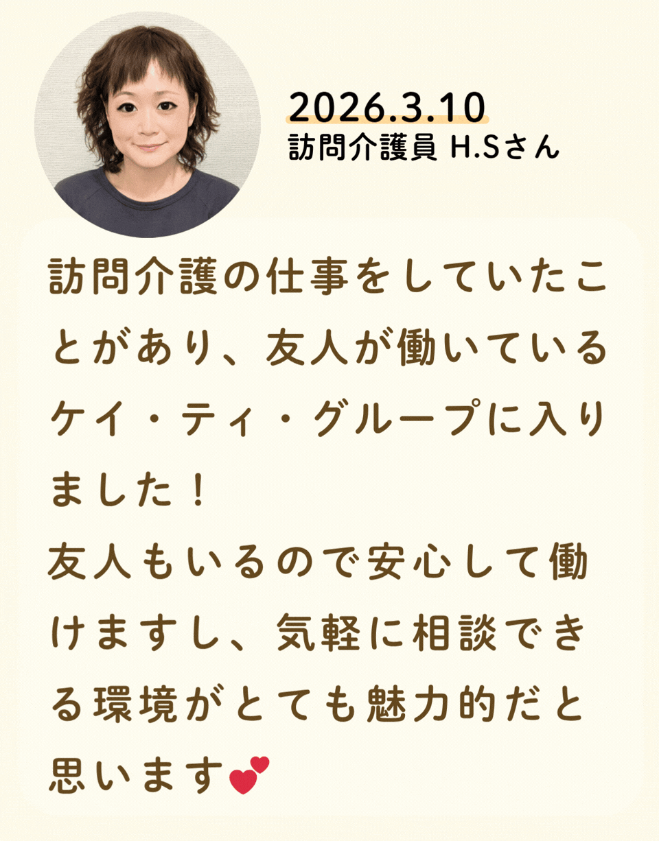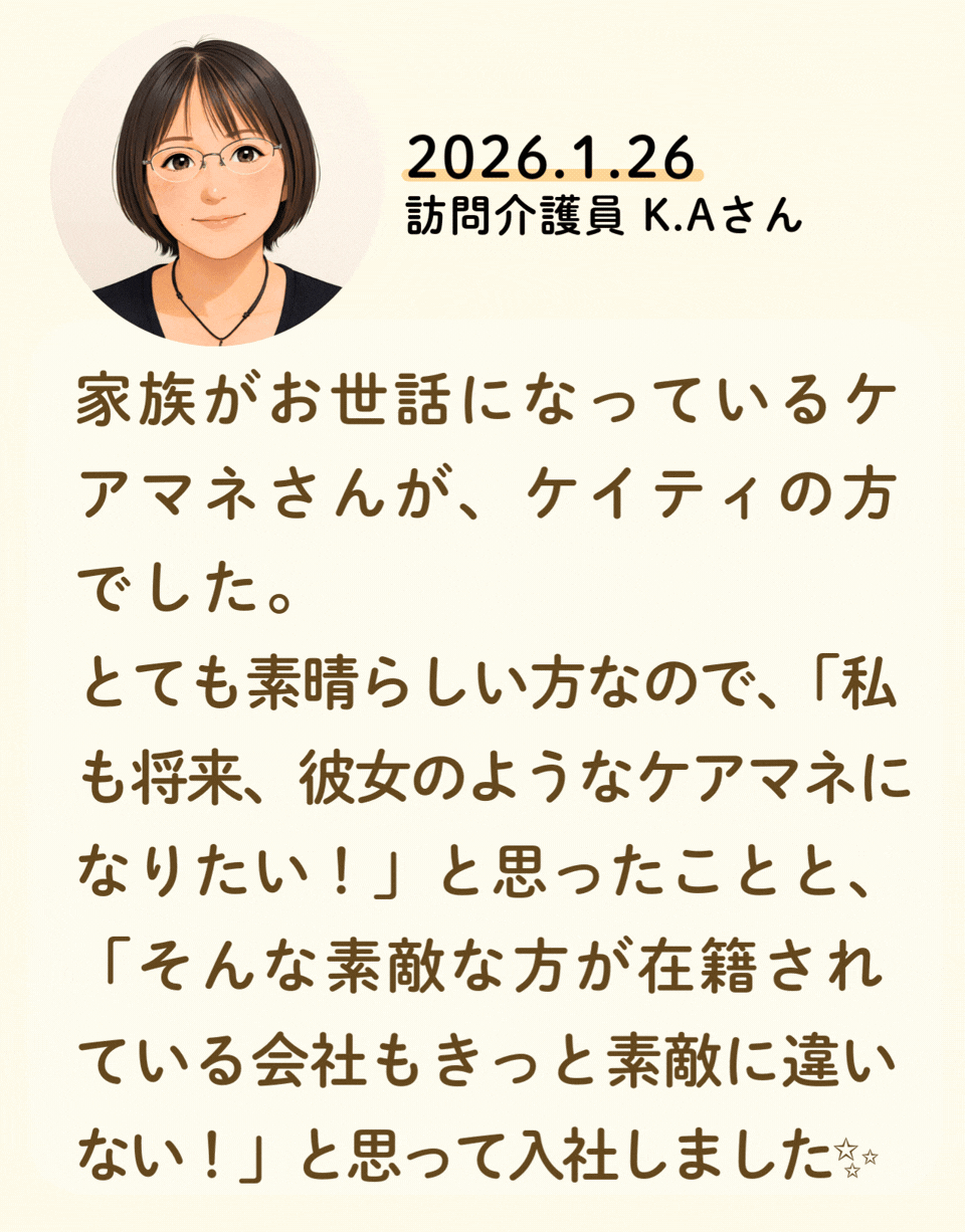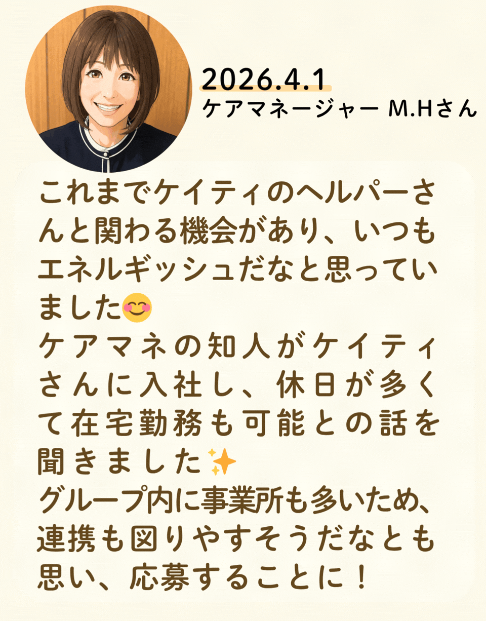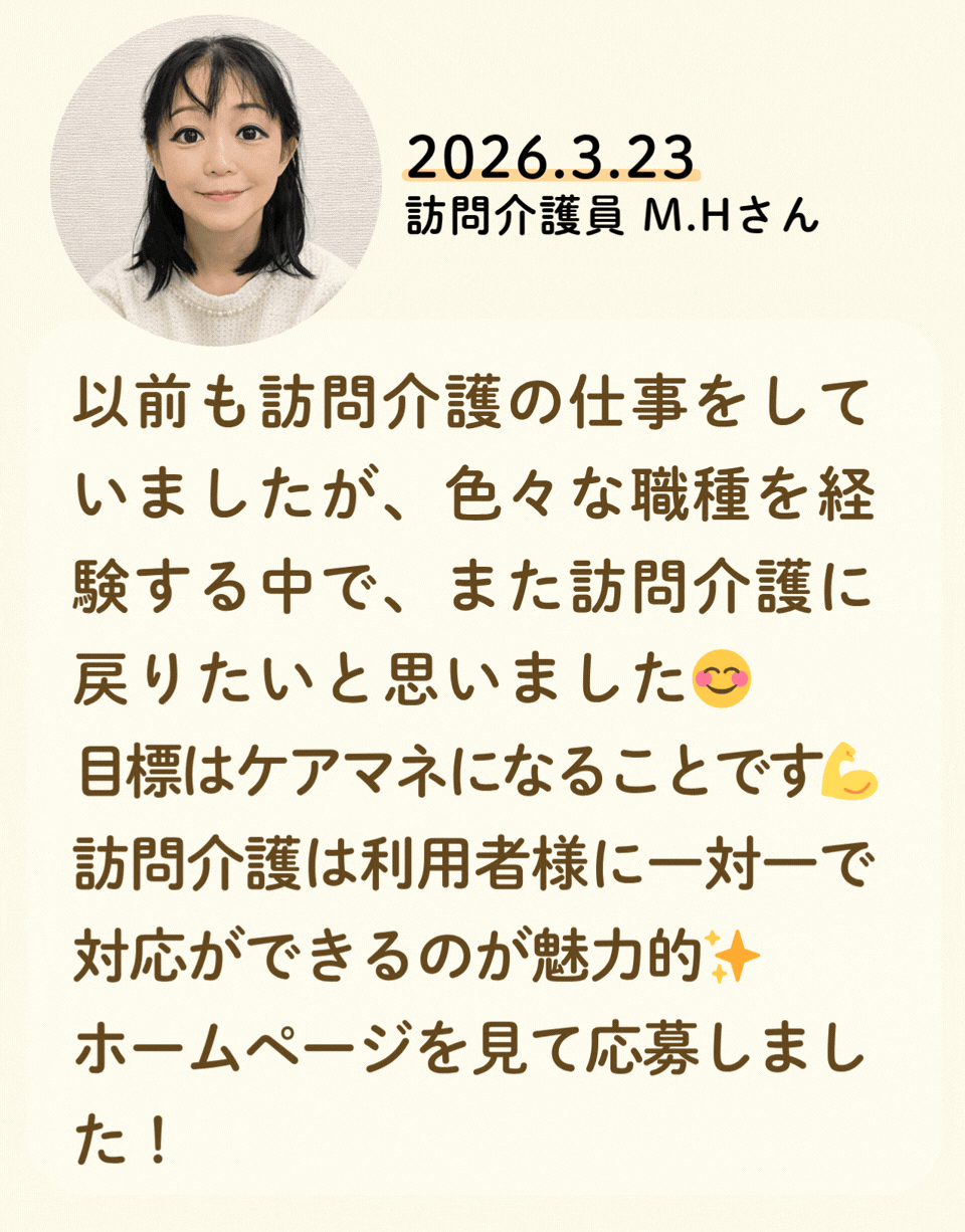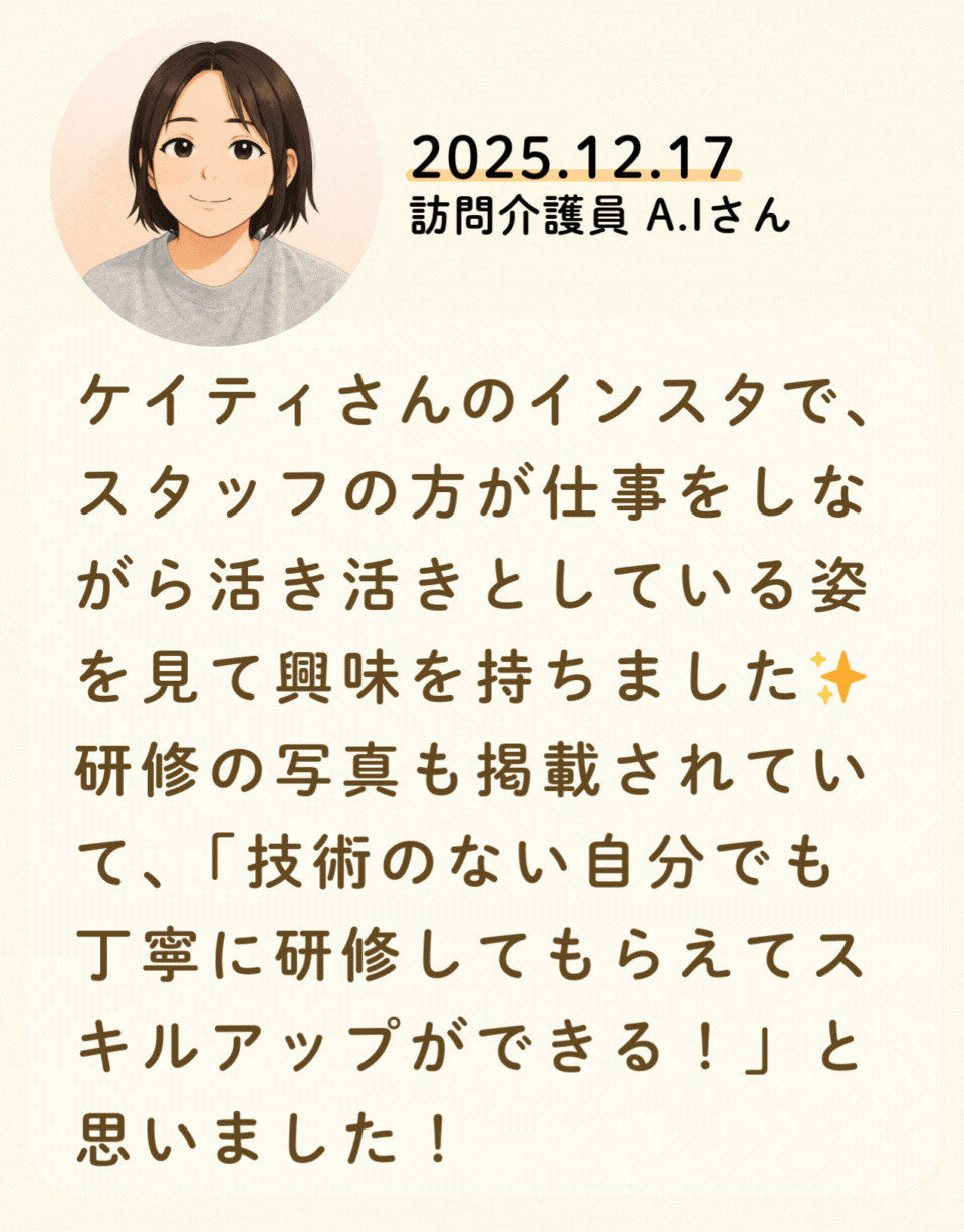 私たちが活躍することで、地域に思いやりが巡っていく。利用者様にも、仲間たちにも!