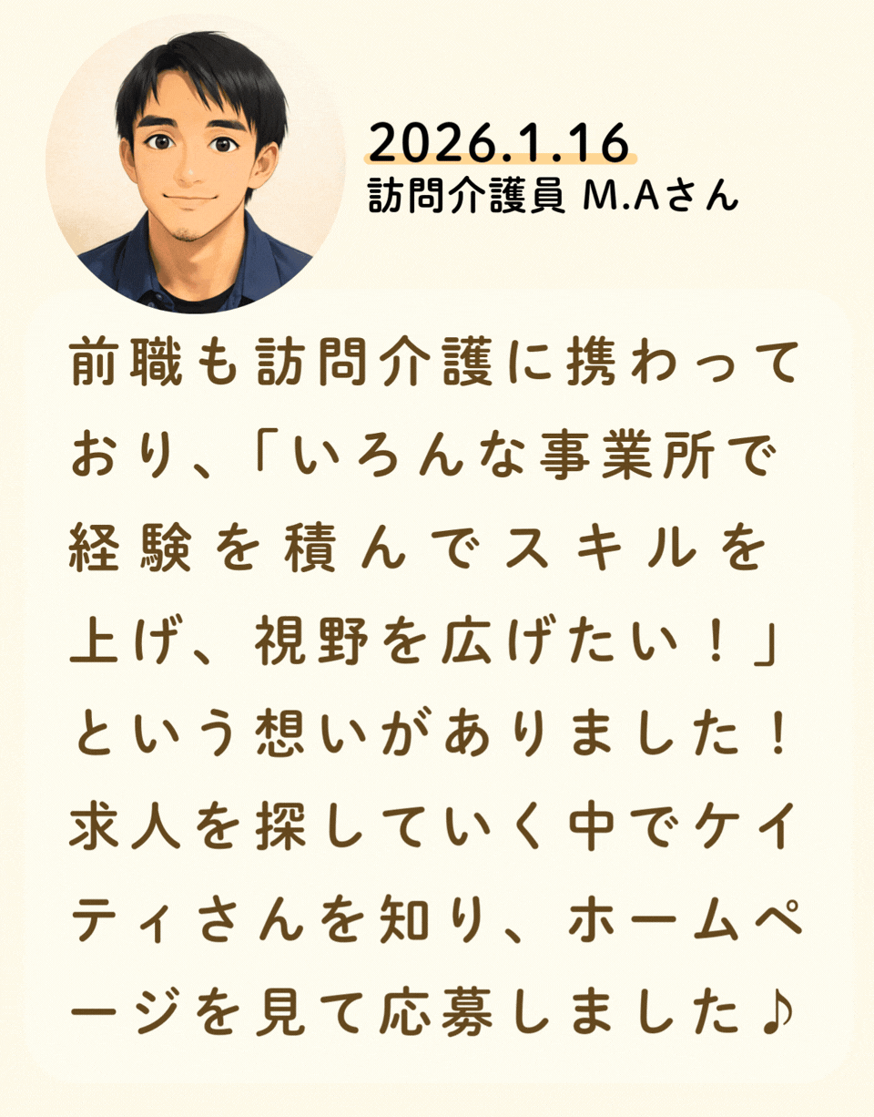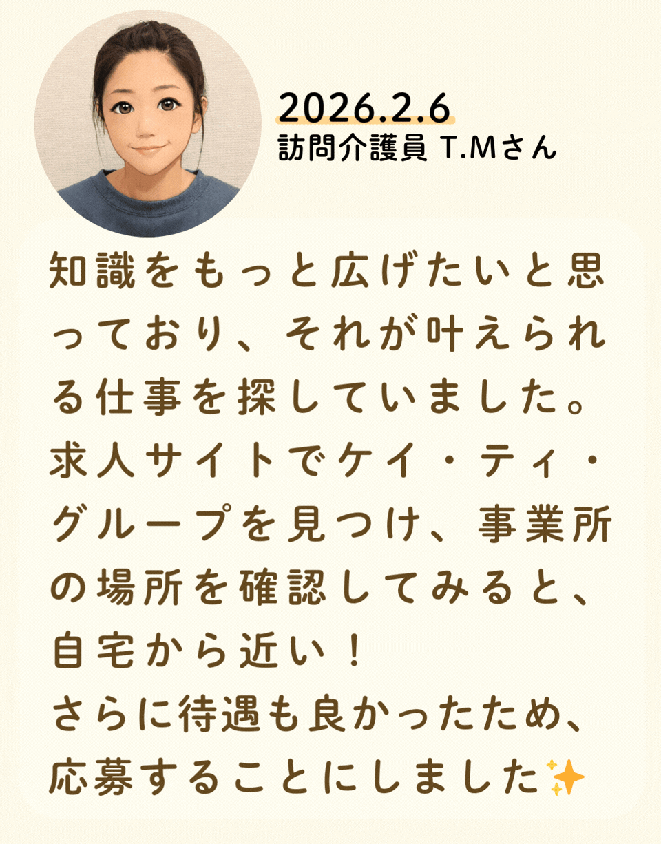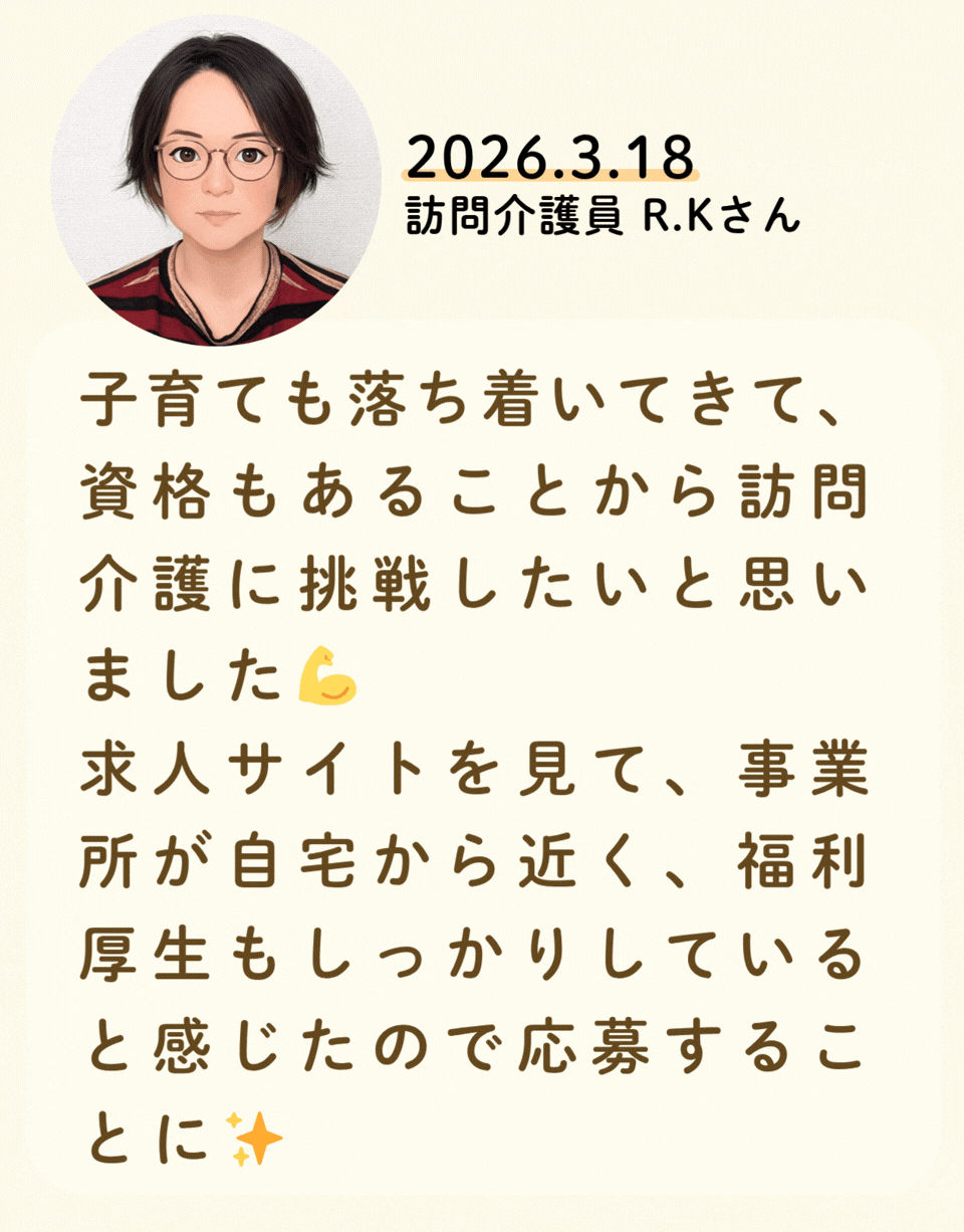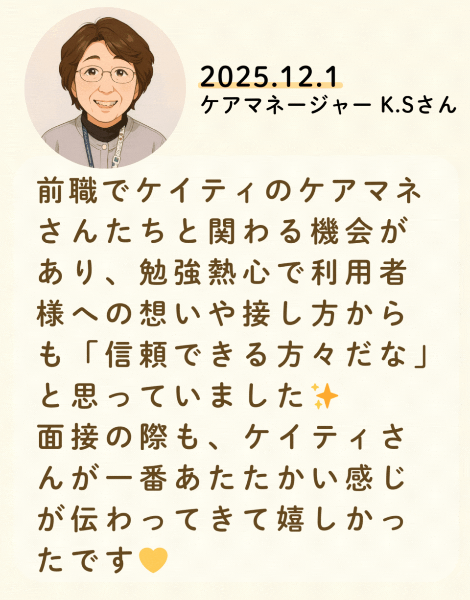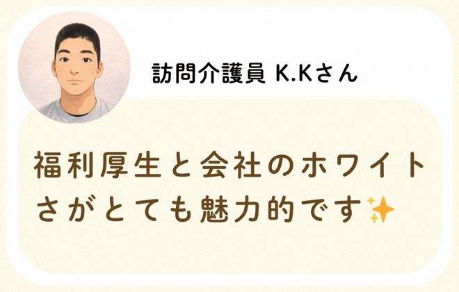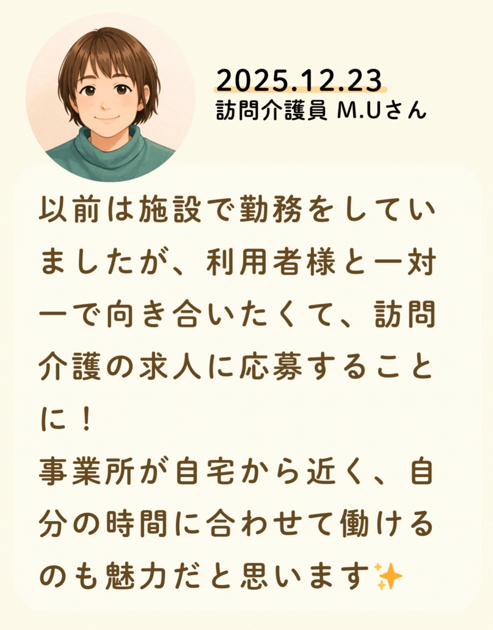 私たちが活躍することで、地域に思いやりが巡っていく。利用者様にも、仲間たちにも!