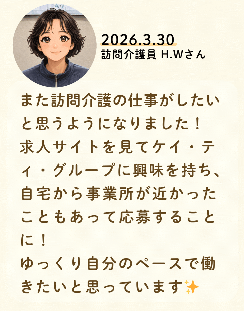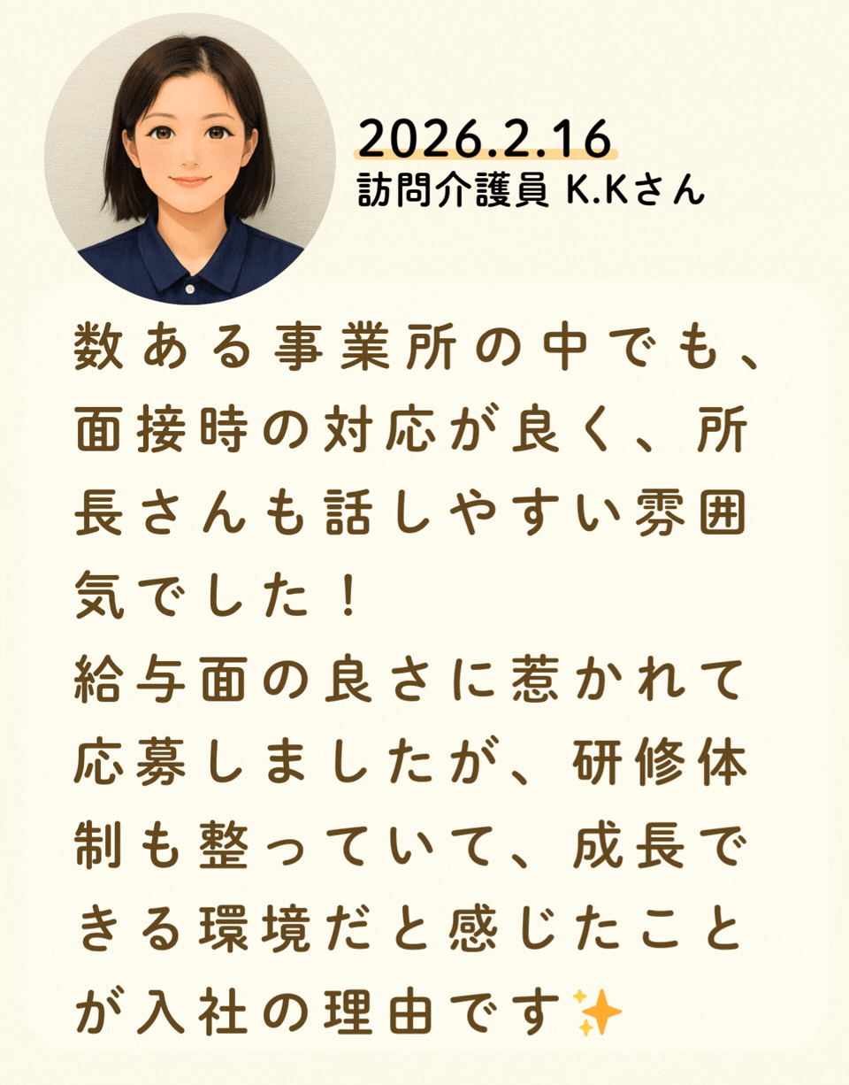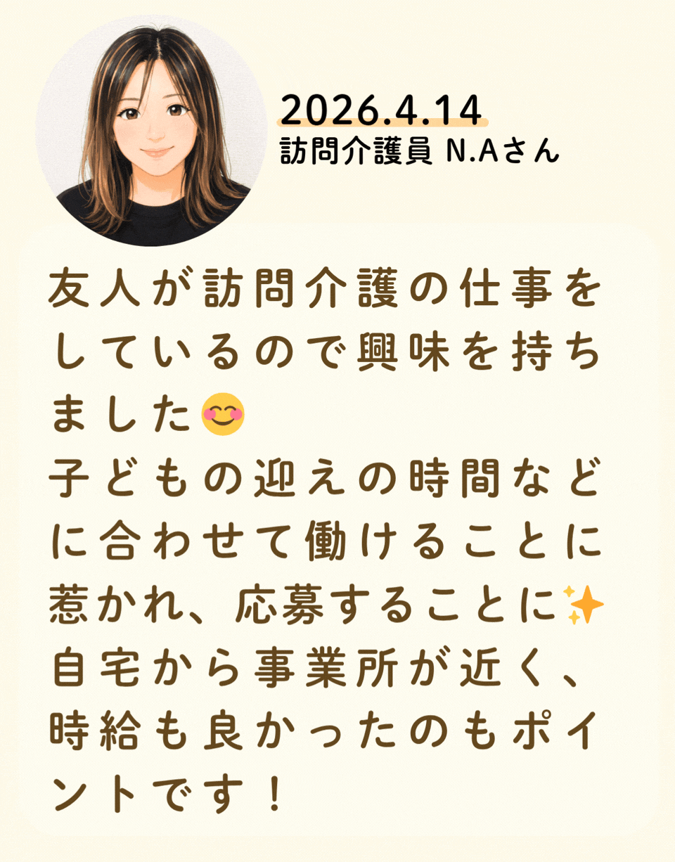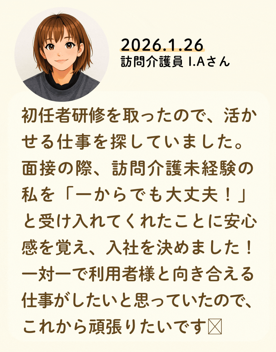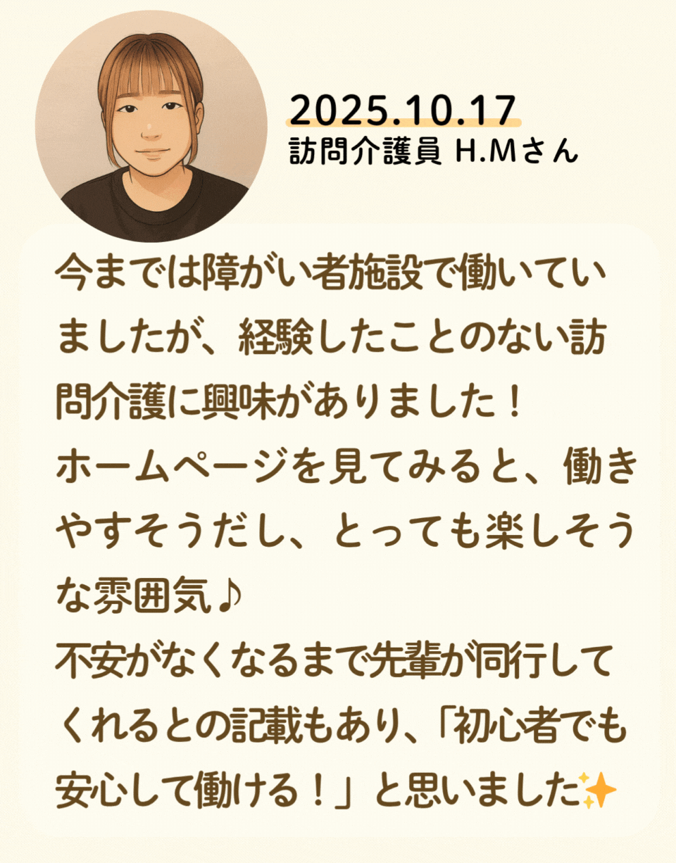 私たちが活躍することで、地域に思いやりが巡っていく。利用者様にも、仲間たちにも!