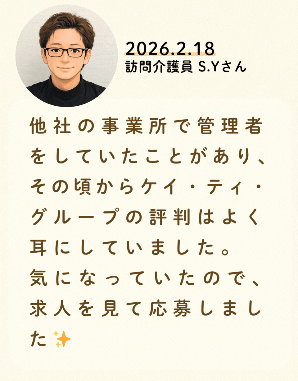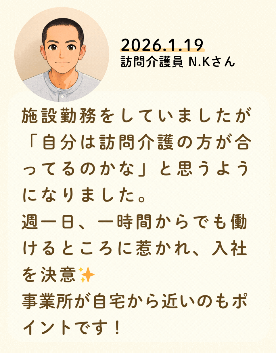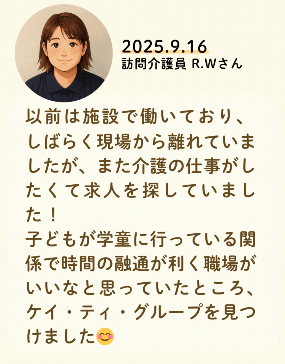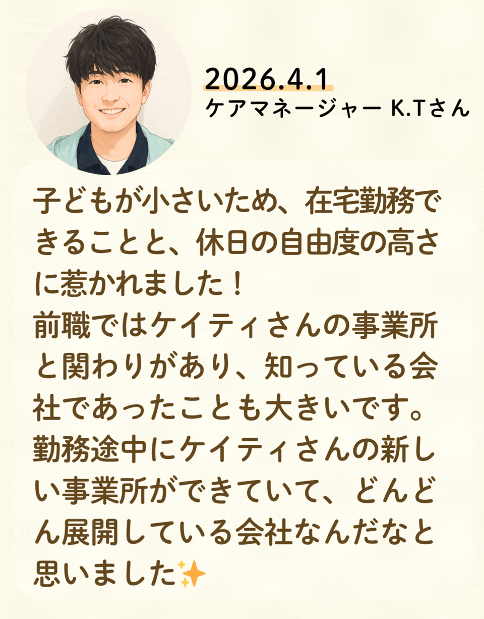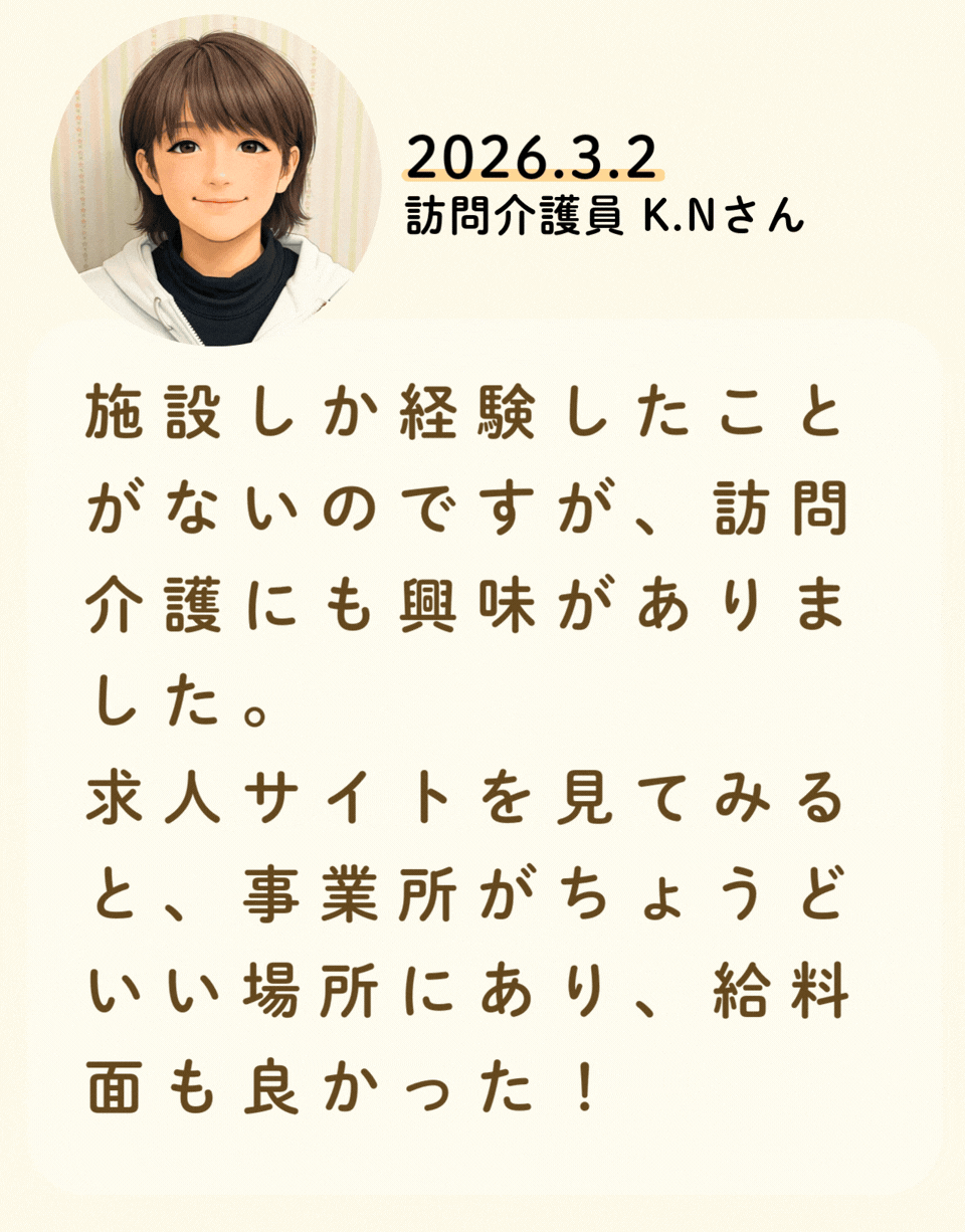私たちが活躍することで、地域に思いやりが巡っていく。利用者様にも、仲間たちにも!