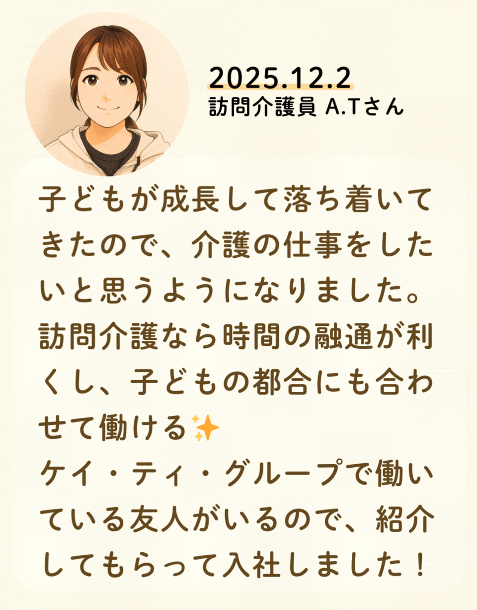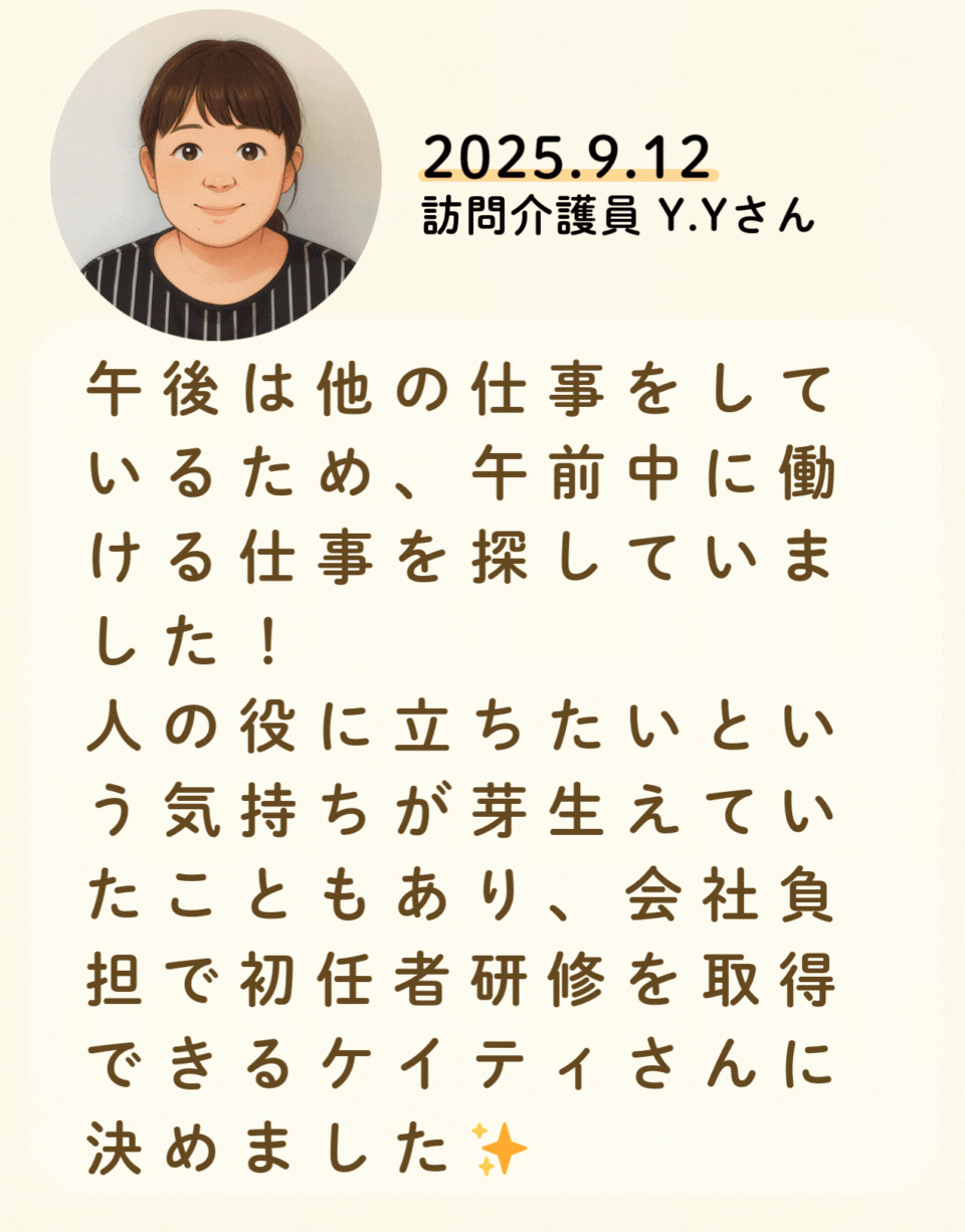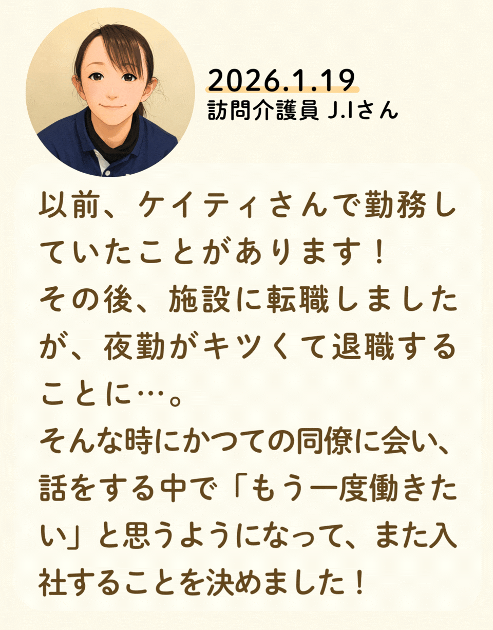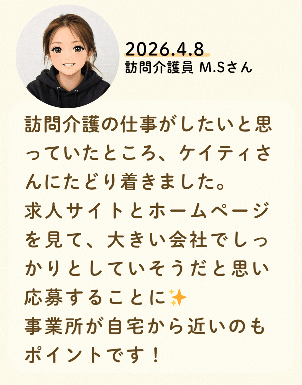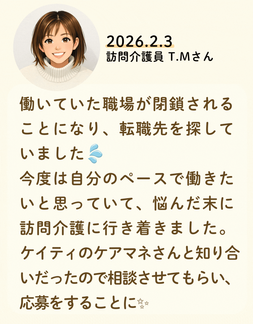 私たちが活躍することで、地域に思いやりが巡っていく。利用者様にも、仲間たちにも!